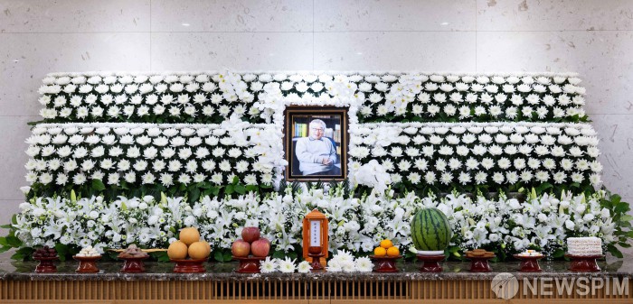 [서울=뉴스핌] 사진공동취재단 = 향년 91세로 별세한 배우 고(故) 이순재의 빈소가 25일 서울 송파구 서울아산병원 장례식장에 마련돼 있다. 서울대학교 철학과를 졸업한 故 이순재는 국내 최고령 현역 배우로 70년 가까이 다양한 연극과 드라마, 영화, 예능을 넘나들며 활약했다. 2025.11.25 photo@newspim.com