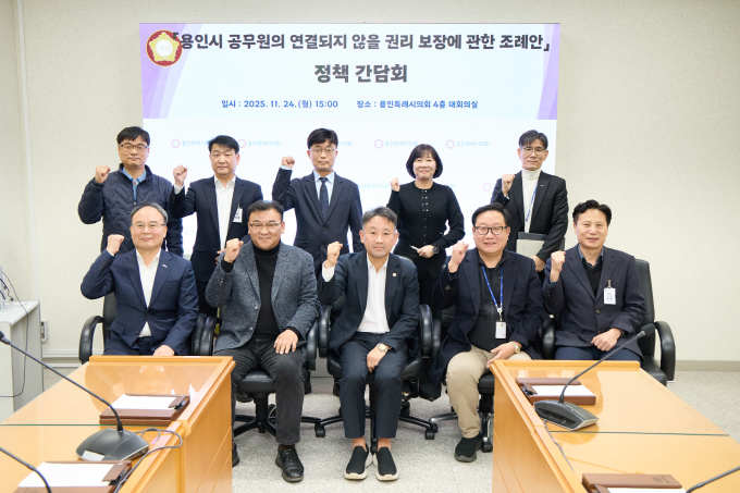 | 용인시 공무원의 연결되지 않을 권리 보장에 관한 조례안 정책 간담회 참석자들이 기념촬영을 하고 있다.[사진=용인시의회] |