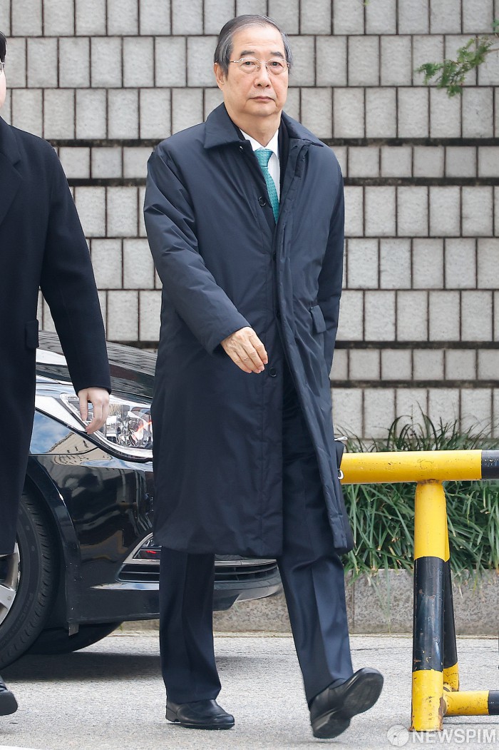 [서울=뉴스핌] 류기찬 기자 = 한덕수 전 국무총리가 26일 오전 서울 서초구 서울중앙지법에서 열린 내란 방조 및 내란 중요임무 종사 혐의 관련 결심공판에 출석하고 있다. 2025.11.26 ryuchan0925@newspim.com