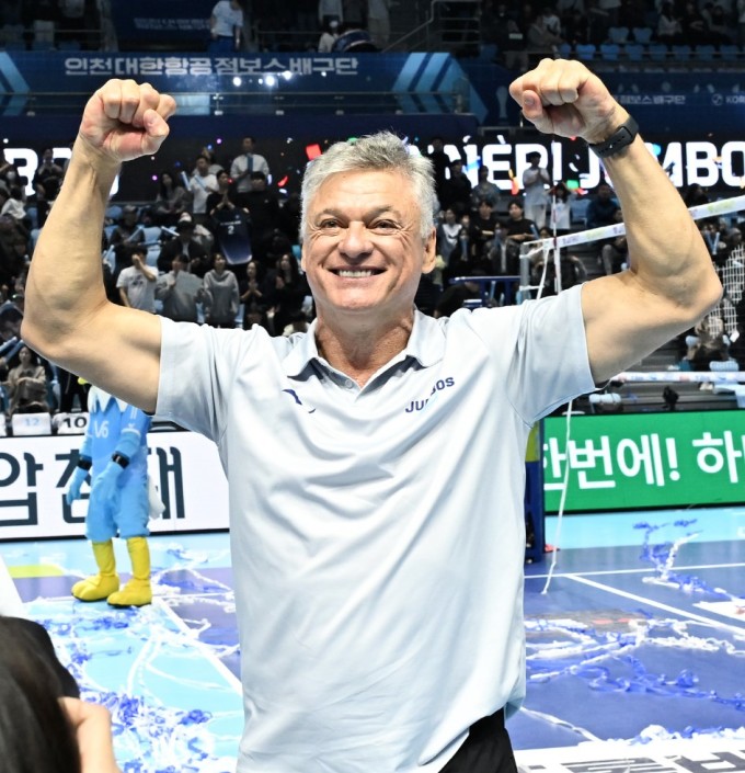 [서울=뉴스핌] 박상욱 기자 = 프로배구 대한항공이 25일 2위 KB손해보험을 제치고 7연승을 달려 선두 자리(8승 1패 승점 22)를 다졌다. 올 시즌 유일한 패배를 안겼던 KB손해보험과 선두 자리를 건 대결에서 거둔 무실세트 완승이다. 대한항공이 시즌 초반 고공행진하는 원동력은 65세 외국인 감독 헤난 달 조토의 지도력이다.