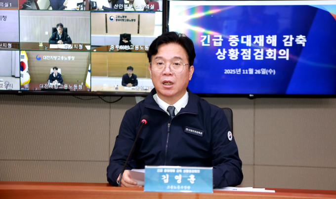 | 김영훈 고용노동부 장관이 26일 서울지방고용노동청에서 '긴급 중대재해 감축 상황점검회의'를 열고 발언하고 있다. [사진=고용노동부] 2025.11.26 sheep@newspim.com |