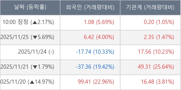 ※ 사모펀드 등 일부 기관의 순매매량은 표시되지 않음