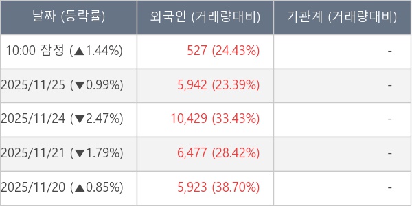 [표] 외국인ㆍ기관 순매매량 (단위 주)