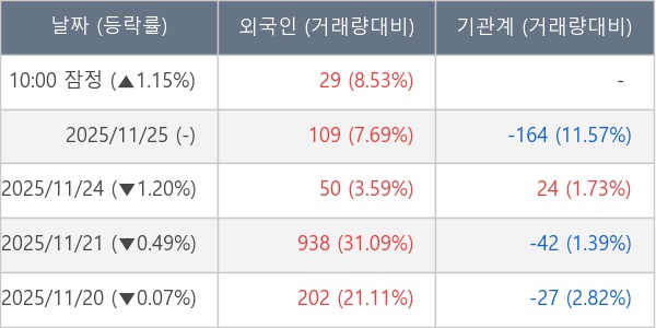 [표] 외국인ㆍ기관 순매매량 (단위 주)