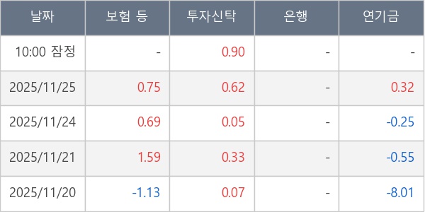 ※ 사모펀드 등 일부 기관의 순매매량은 표시되지 않음