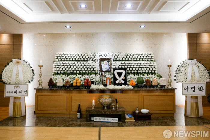 [서울=뉴스핌] 사진공동취재단 = 26일 서울 송파구 풍납동 서울아산병원 장례식장에 마련된 고(故) 이순재의 빈소에 금관문화훈장(1등급)이 놓여져 있다. 정부는 지난 25일 문화예술 발전과 국민 문화 향유에 기여한 공적을 기려 금관문화훈장(1등급)을 추서했다. 2025.11.26 photo@newspim.com