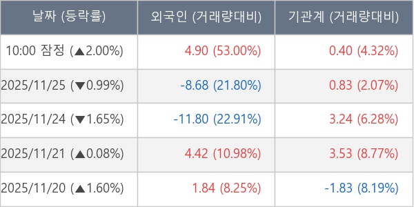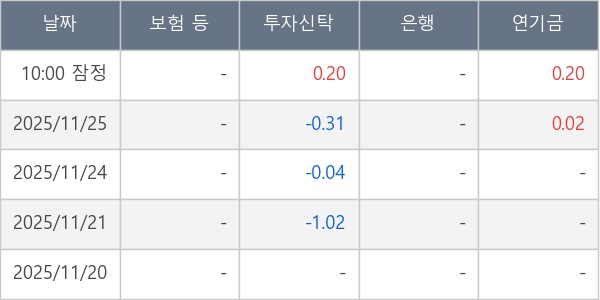 [표] 주요 기관별 순매매량 (단위 만주)