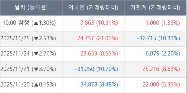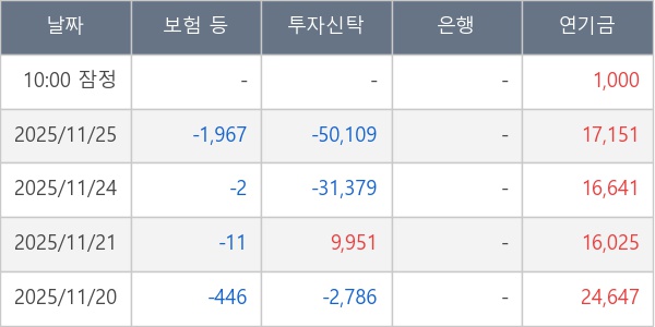 ※ 사모펀드 등 일부 기관의 순매매량은 표시되지 않음