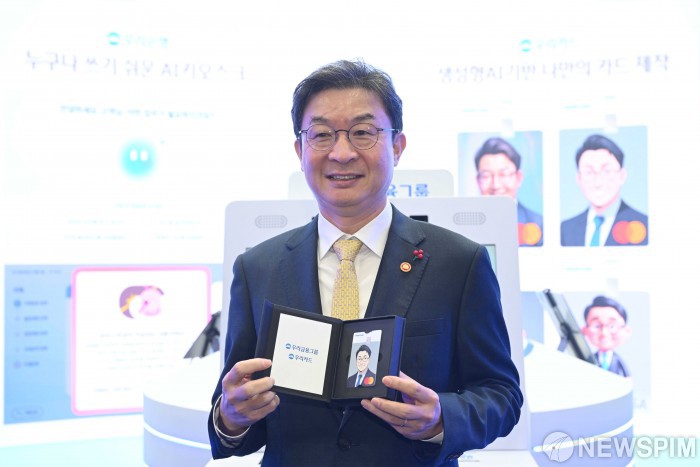 [서울=뉴스핌] 김학선 기자 = 이억원 금융위원회 위원장이 26일 오전 서울 서초구 aT센터에서 열린 코리아 핀테크 위크 2025에 마련된 우리금융그룹 부스에서 금융사기를 예방하는 AI 키오스크 시연을 마친 뒤 기념촬영을 하고 있다. 2025.11.26 yooksa@newspim.com