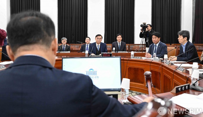 [서울=뉴스핌] 윤창빈 기자 = 26일 서울 여의도 국회에서 열린 정보위원회 전체회의에서 신성범 위원장이 의사봉을 두드리고 있다. 2025.11.26 pangbin@newspim.com