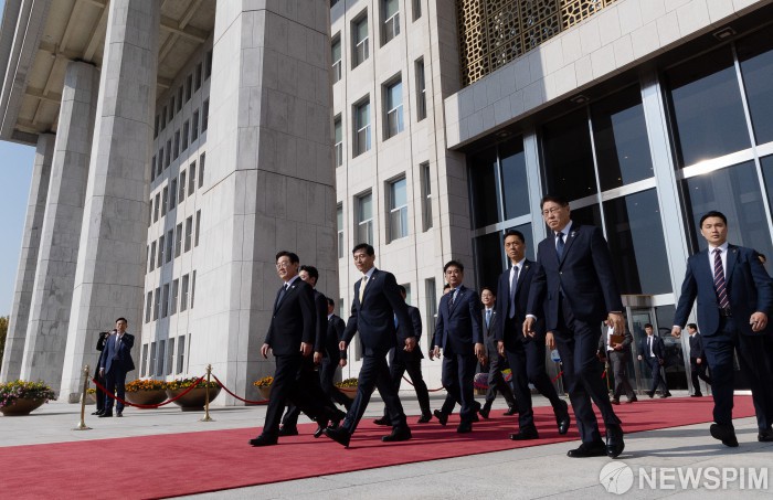 | [서울=뉴스핌] 윤창빈 기자 = 이재명 대통령이 4일 오전 서울 여의도 국회에서 시정연설을 마치고 이동하고 있다. 2025.11.04 pangbin@newspim.com |