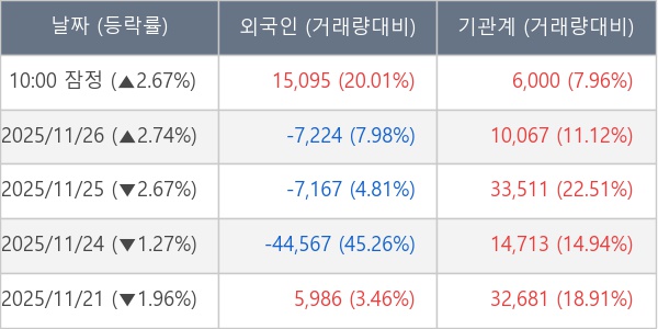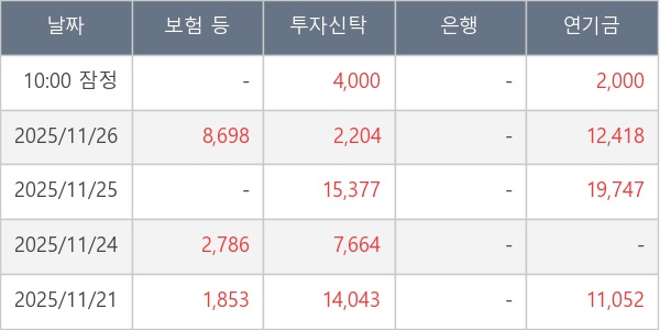 ※ 사모펀드 등 일부 기관의 순매매량은 표시되지 않음