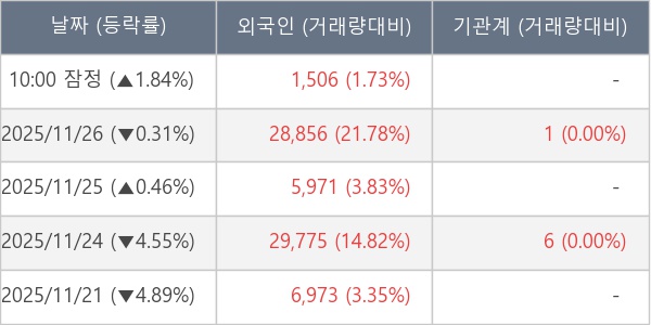 [표] 외국인ㆍ기관 순매매량 (단위 주)