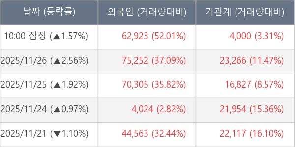 ※ 사모펀드 등 일부 기관의 순매매량은 표시되지 않음