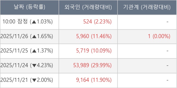 [표] 외국인ㆍ기관 순매매량 (단위 주)