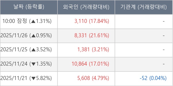 [표] 외국인ㆍ기관 순매매량 (단위 주)
