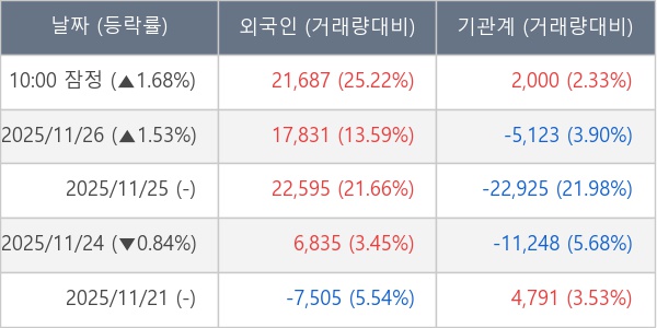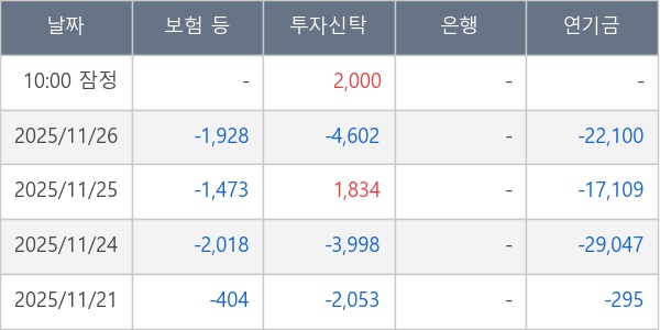 ※ 사모펀드 등 일부 기관의 순매매량은 표시되지 않음