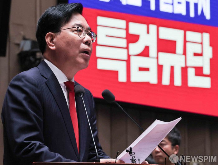 [서울=뉴스핌] 신정인 기자 = 송언석 국민의힘 원내대표는 이재명 대통령과 더불어민주당을 겨냥해 "이분들이 진짜 내란세력이다. 1년 내내 권력 남용과 외압, 의사봉을 철저히 악용해 대한민국을 짓밟았다"고 비판했다.