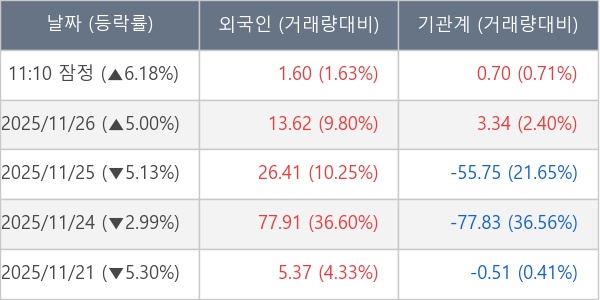 ※ 사모펀드 등 일부 기관의 순매매량은 표시되지 않음