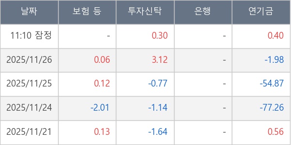 [표] 주요 기관별 순매매량 (단위 만주)