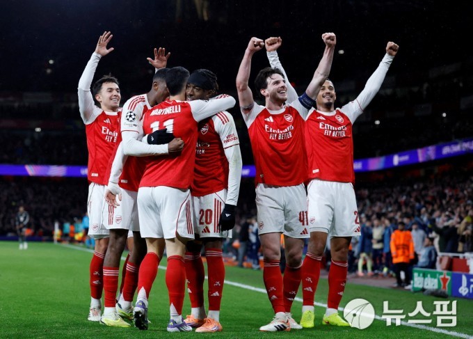 | [런던 로이터=뉴스핌] 박상욱 기자= 아스널 선수들이 27일(한국시간) UEFA 챔피언스리그(UCL) 리그 페이즈 5차전에서 팀의 세 번째 골을 넣고 기뻐하고 있다. 2025.11.27 psoq1337@newspim.com |