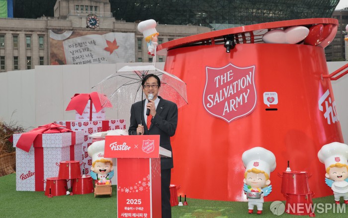 [서울=뉴스핌] 이길동 기자 = 이경우 휘슬러코리아 대표가 27일 서울 중구 서울광장에서 열린 2025 휘슬러X구세군 '사랑의 레시피 팟' 자선냄비 전달식에서 인사말을 하고 있다. 2025.11.27 gdlee@newspim.com