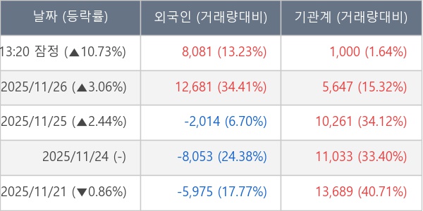 ※ 사모펀드 등 일부 기관의 순매매량은 표시되지 않음