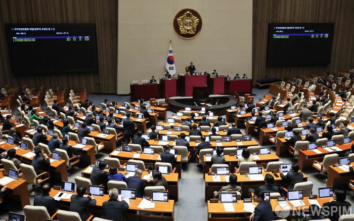 [서울=뉴스핌] 윤창빈 기자 = 27일 서울 여의도 국회에서 열린 본회의에서 국가인권위원회 위원(김학자, 조숙현) 선출안이 가결되고 있다. 2025.11.27 pangbin@newspim.com