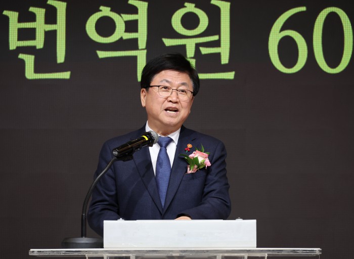 | [서울=뉴스핌] 최교진 교육부 장관이 27일 서울 종로구 HW컨벤션센터에서 열린 한국고전번역원 60년 기념식에서 축사를 하고 있다. [사진=교육부] 2025.11.27 photo@newspim.com |