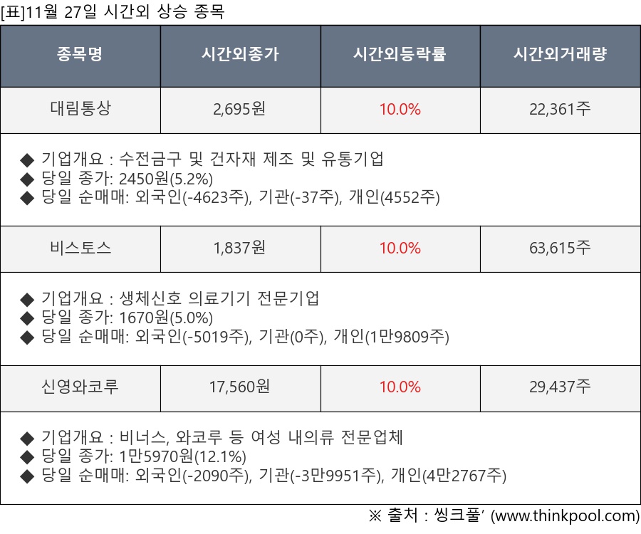 ※ 관련 종목: 대림통상, 비스토스, 신영와코루
