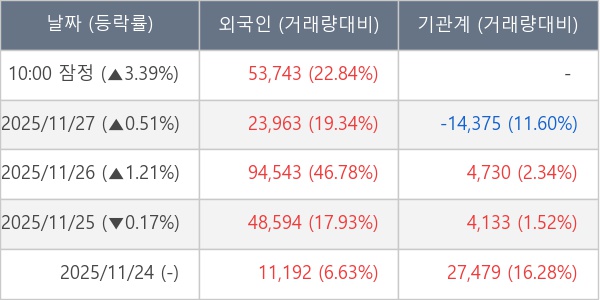 [표] 외국인ㆍ기관 순매매량 (단위 주)