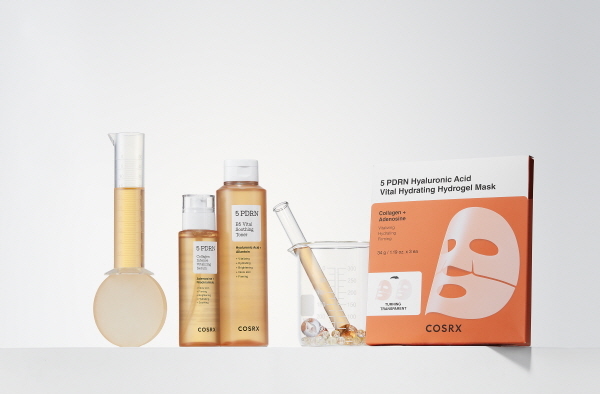 코스알엑스 5 PDRN 라인은 토너, 세럼, 하이드로겔 마스크 총 3종으로 구성된다. 5 PDRN B5 바이탈 수딩 토너는 5종 PDRN과 판테놀(B5)을 배합해 피부 자생과 진정 케어에 초점을 맞췄으며, 5 PDRN 콜라겐 인텐스 바이탈라이징 세럼은 저분자 콜라겐과 5종 PDRN의 시너지로 탄력 개선에 특화된 특징이다.