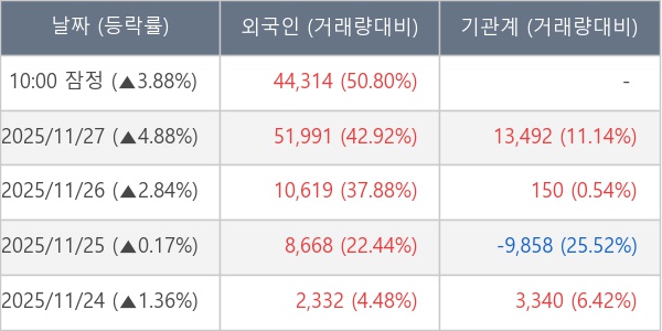 [표] 외국인ㆍ기관 순매매량 (단위 주)