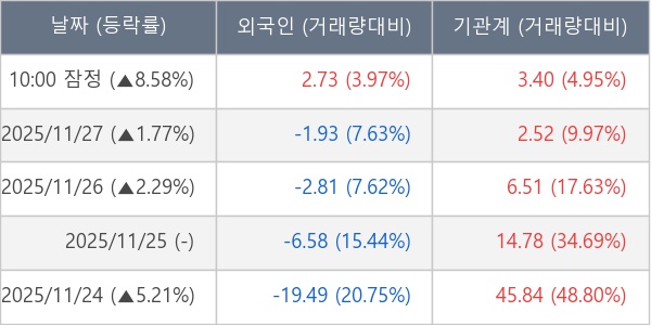 ※ 사모펀드 등 일부 기관의 순매매량은 표시되지 않음