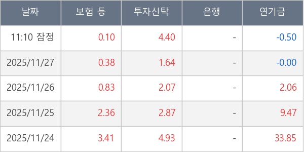 [표] 주요 기관별 순매매량 (단위 만주)