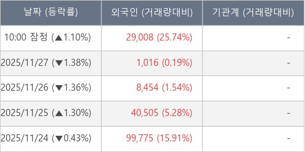 [표] 외국인ㆍ기관 순매매량 (단위 주)
