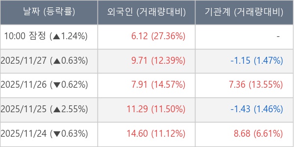 [표] 외국인ㆍ기관 순매매량 (단위 만주)