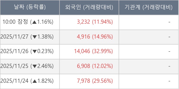 [표] 외국인ㆍ기관 순매매량 (단위 주)