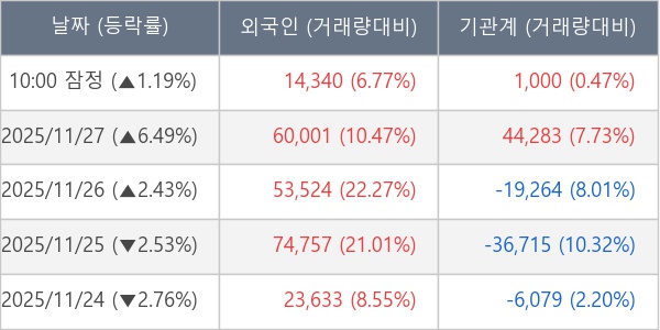 ※ 사모펀드 등 일부 기관의 순매매량은 표시되지 않음