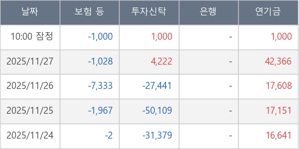 [표] 주요 기관별 순매매량 (단위 주)