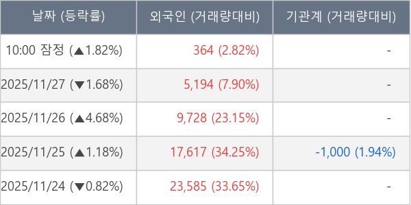 [표] 외국인ㆍ기관 순매매량 (단위 주)