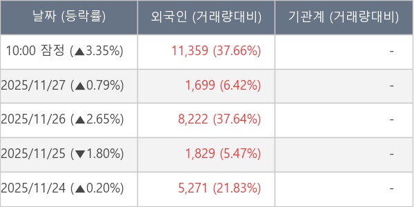 [표] 외국인ㆍ기관 순매매량 (단위 주)