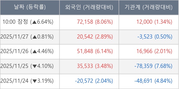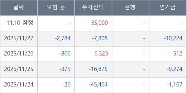 ※ 사모펀드 등 일부 기관의 순매매량은 표시되지 않음