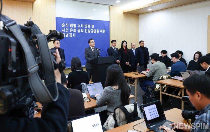 [서울=뉴스핌] 최지환 기자 = 채상병 순직 사건 외압·은폐 의혹을 수사해온 이명현 순직해병 특별검사가 28일 오전 서울 서초구 해병특검 사무실에서 열린 정례 브리핑에서 최종 수사 결과를 발표하고 있다. 2025.11.28 choipix16@newspim.com