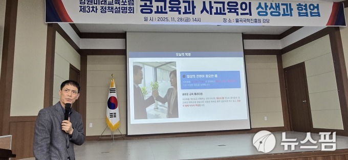 최광익 강원미래교육포럼 대표는 "오늘 정책보고회는 '공교육과 사교육의 상생과 협업'이라는 질문에 새로운 답을 찾기 위해 마련했다"며 "서로의 영역을 경쟁으로 바라볼 것이 아니라 강원교육의 인재 양성을 위한 동반자로 인식해야 한다"고 말했다.