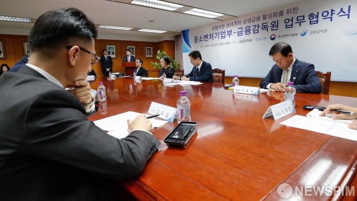 [서울=뉴스핌] 류기찬 기자 = 28일 오후 서울 영등포구 금융감독원에서 '모험자본 생태계와 상생금융 활성화를 위한 중소벤처기업부-금융감독원 업무협약식'이 진행되고 있다. 2025.11.28 ryuchan0925@newspim.com