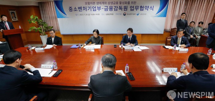 [서울=뉴스핌] 류기찬 기자 = 28일 오후 서울 영등포구 금융감독원에서 '모험자본 생태계와 상생금융 활성화를 위한 중소벤처기업부-금융감독원 업무협약식'이 진행되고 있다. 2025.11.28 ryuchan0925@newspim.com