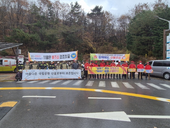 | 27일 경남 남해군 금산 입구에서 열린 유관기관 산불예방 합동 캠페인 [사진=남해군]2025.11.28 |