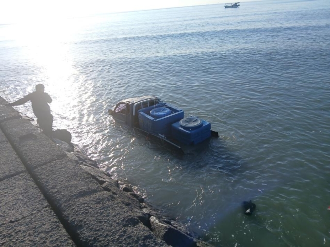 | 인천 을왕리선착장 인근에서 바다로 추락한 트럭 [사진=인천소방본부] |