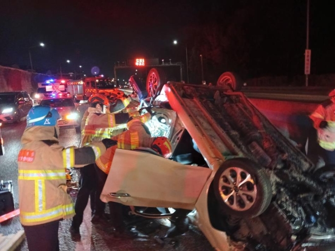 수도권1순환고속도로서 전복된 경차에 뒷차 충돌…2명 사상